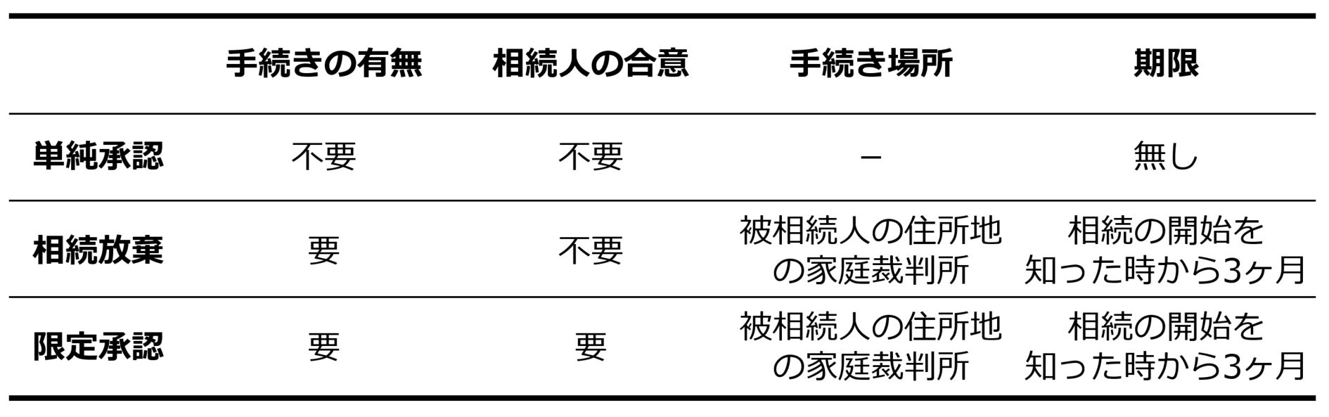 ここでは、単純承認、限定承認、相続放棄について解説します。