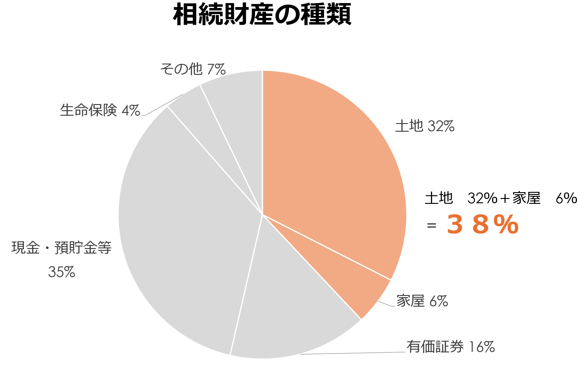 また、日本人の財産は、不動産の比率がとても高いです。下図は、国税庁が公表している令和4年の相続財産の種類です。