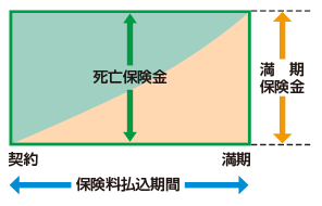 上図を見ると、保険金を受け取れる期間が決まっているので、右側の先に終わりがあり、箱型の図になっています。