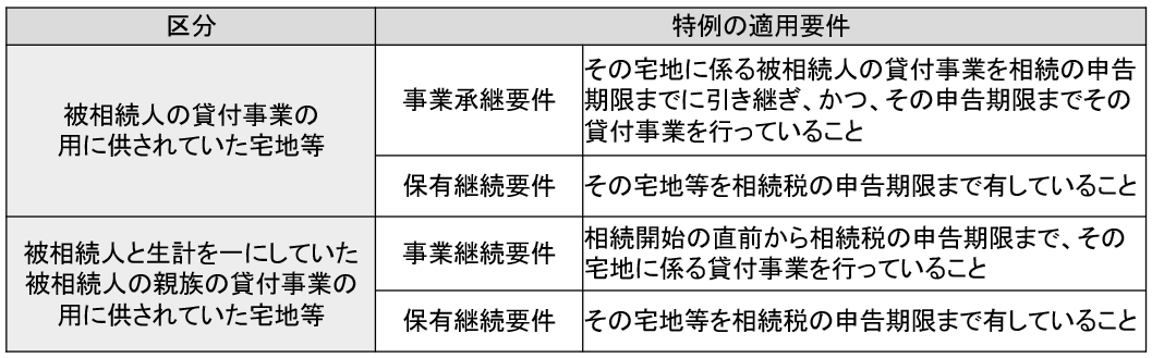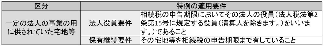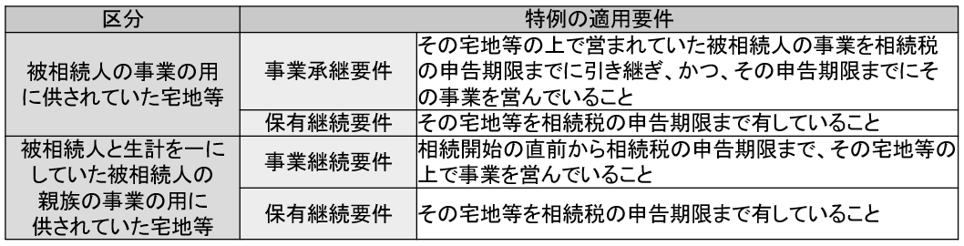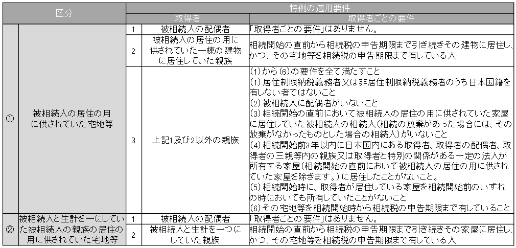 小規模宅地等の特例を利用する為には、利用する為の対象者または対象物の適用要件があります。